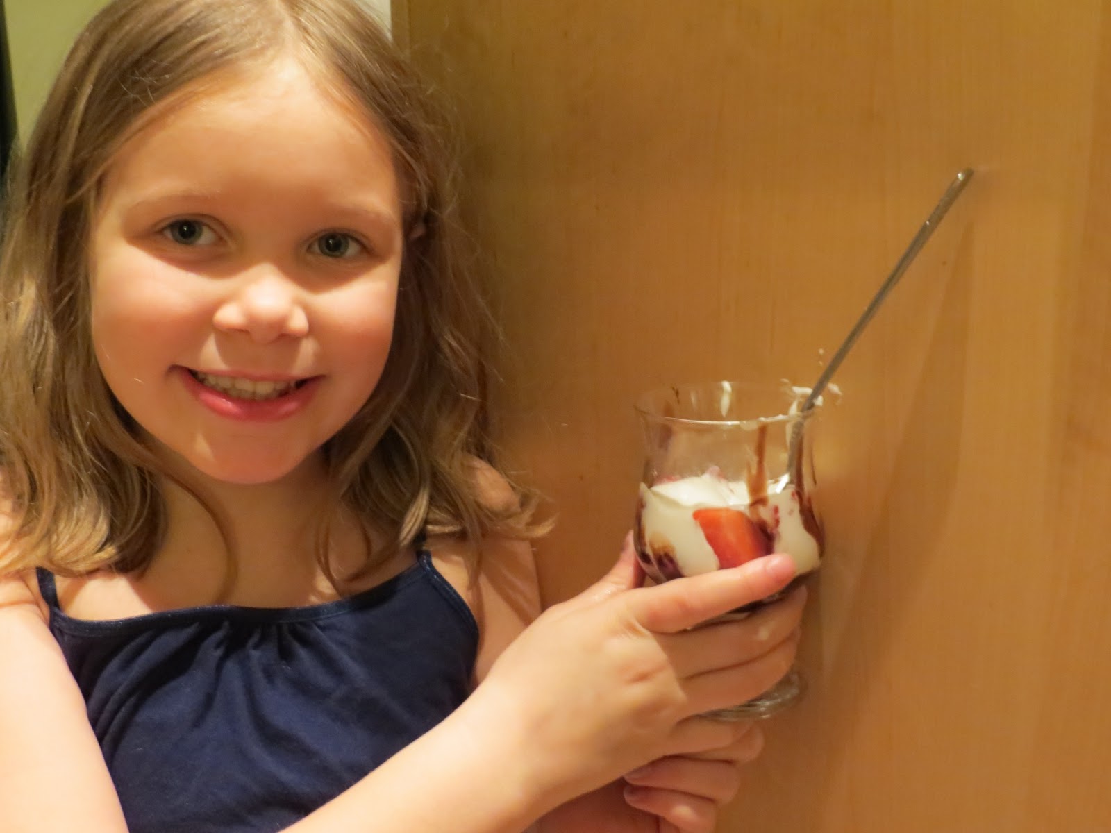 2 cups heavy cream whipped and sweetened with 1/2 cup powdered sugar and 1 tsp. vanilla (you can substitute this with store bought cool whip, but there's nothing better than homemade whipped cream and it really is easy to make)